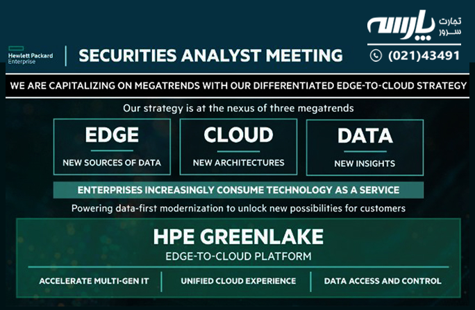 HPE GreenLake پلتفرم رایانش ابری لبهای (edge-to-cloud)، تجربه، کنترل، دید یکپارچه و دسترسی سریع و آسان با بیش از 70 سرویس ابری را به مشتریان و شرکای خود ارائه میدهد.