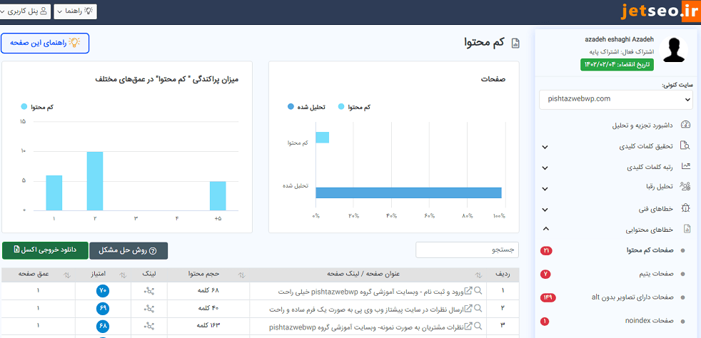 یکی از قدیمی ترین ابزار های سئوی ایران، جت سئو نام دارد این ابزار در سال 98 رونمایی شد که با هدف ارزیابی صفحات سایت و جایگاه کلمات کلیدی ساخته شد این ابزار بیش تر به ارائه مشکلات سایت شما می پردازد همچنین جت سئو یک ابزار معروف ایرانی است که به صفحات وب سایت شما را به صورت کلی کراول و آنالیز می کند و در فرایند سئو به شما کمک های شایانی می کند از امکانات و ابزار های این سرویس می توان به موارد زیر اشاره کرد.